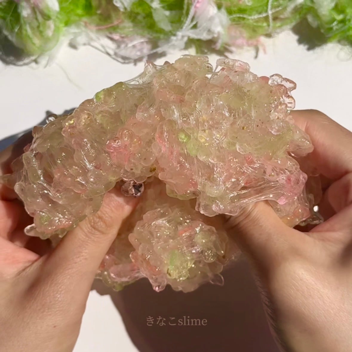 春を閉じ込めたような、やさしい色合いのスライムです。
