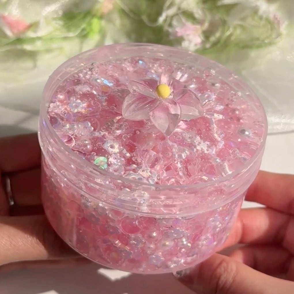 やさしい桜ピンクをベースに、8種類の異なるビーズを贅沢に詰め込んだ、とっても華やかなスライムです。